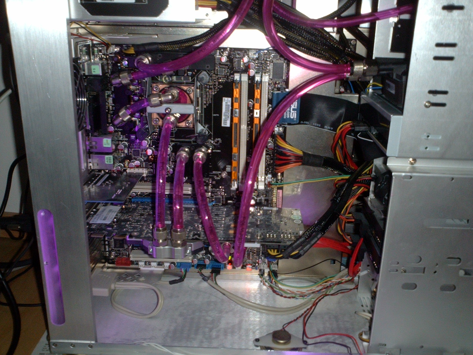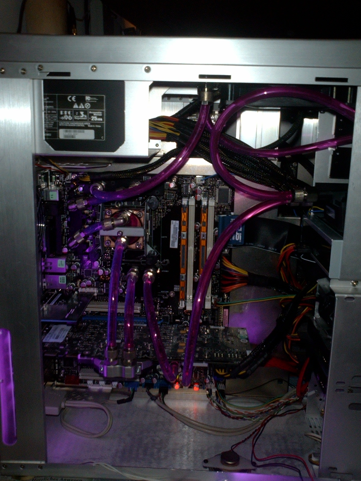 So - nach einigen schweißtreibenden Stunden, paar Bier und unzählige Nerven weniger, ist ogums WaKü der Fertigstellung sehr nahe. Nur noch die Innenraumbeleuchtung vernünftig anbringen, Daten vom alten PC rüber schaufeln und fertig isser.